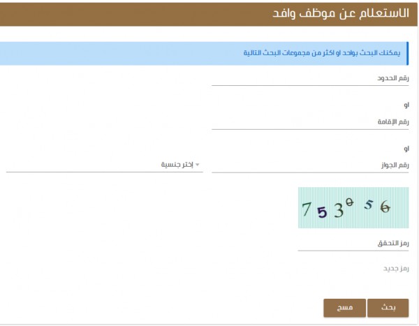 الاستعلام عن موظف وافد برقم الإقامة أو رقم الجواز والتعرف على