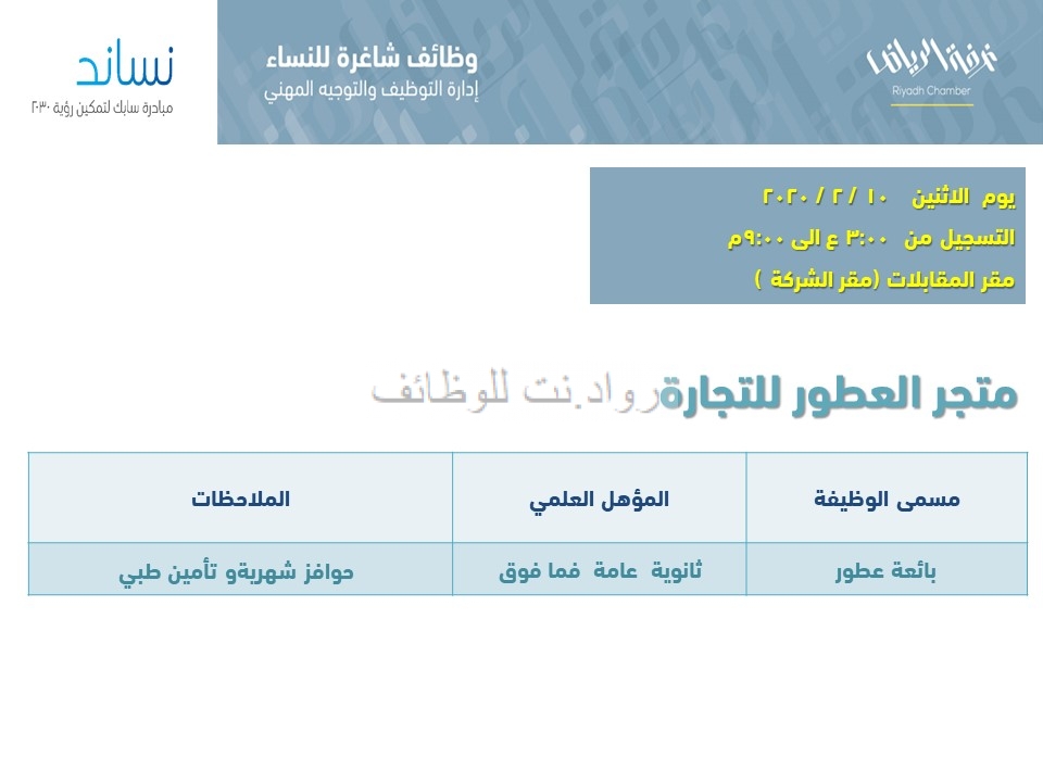متجر العطور للتجارة وظائف بائعات عطور في الرياض