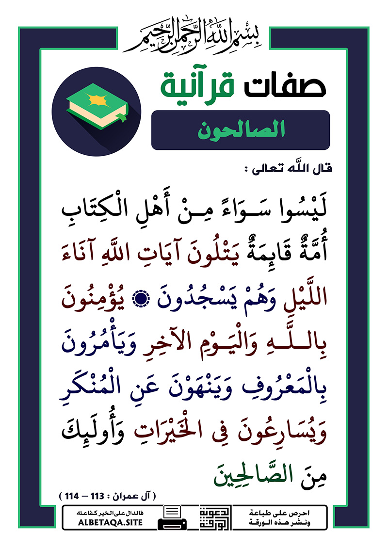 صفات قرآنية الصالحون يؤمنون بالله واليوم الآخر موقع البطاقة الدعوي