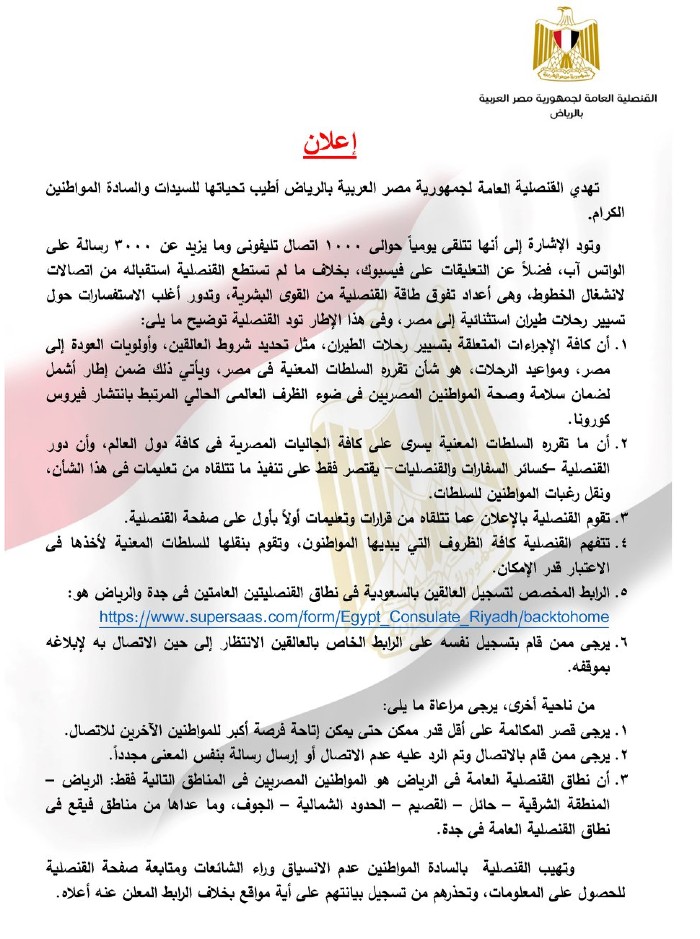 رابط حجز القنصلية العامة المصرية في الرياض Facebook